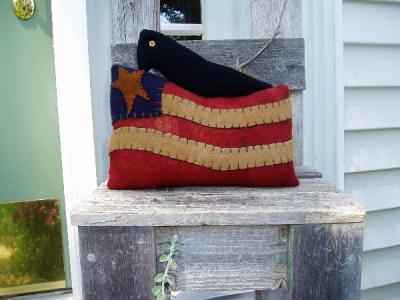 What a wonderful year round addition to your primitive home! My flag and crow sill sitter is approx 9" by 10" in size and is weighted with some play sand for stability. Looks great on any window sill, table, hutch, or shelf. Made entirely of hand dyed wool, you're sure to show off your American pride.Shipping is FREE