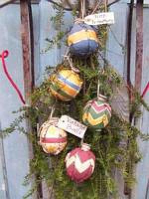 Your creativity is endless with this pattern by Hill Kountry Kreations. There are so many things you can do with these prim Christmas Balls. Use them as ornaments, put in old bowl or hang them on a pine garland. They are made of muslin and completely handpainted. Painting instructions are given for 5 different balls,The balls measure approx. 3" in diameter. Shipping is included in the cost.