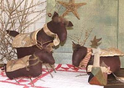 Let it snow while you are stitching these simple-to-make snowlady and children-10" and 7". Also included are instructions for a 13" by 8" stitchery/applique and antique drum. Another wonderful design by Reets' Rags To Stitches. Shipping is included in cost