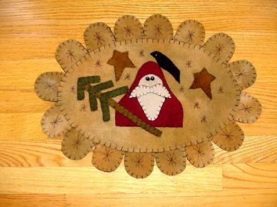 My woodland santa can be left out all winter long! My hand dyed, hand stitched, wool penny rug is approx 13" by 18" in size. I have backed this in cotton, signed, and dated it for your collection. Shipping is FREE