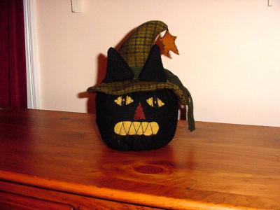 Calling all you cat lovers! This one is great for the fall season or anytime of the year as well! Approx 6" by 9" in size, I have stitched this in hand dyed wool in prim colors to be left out all year long! There is a small amount of playsand in the bottom for stability and stuffed entirely of polyfill. Shipping and handling is included!