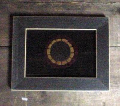 This piece is simple but pure! Approx 5 by 7", the glassed wood frame is stained black and antiqued to look aged. The design is handstitched with wool thread on hand dyed wool. You can hang this piece or stand it up. The options are on the cardboard backing. Shipping and handling are included in the price
